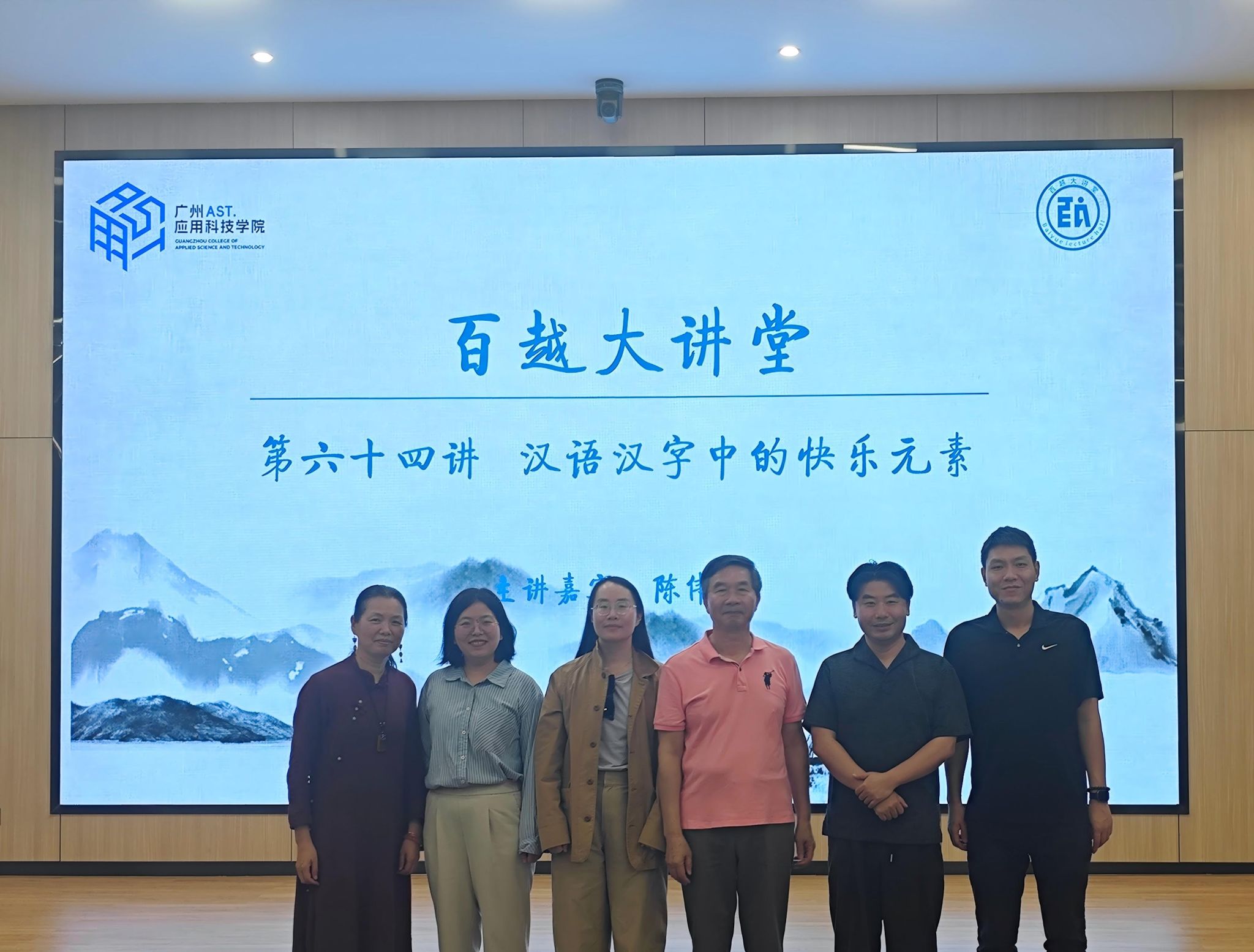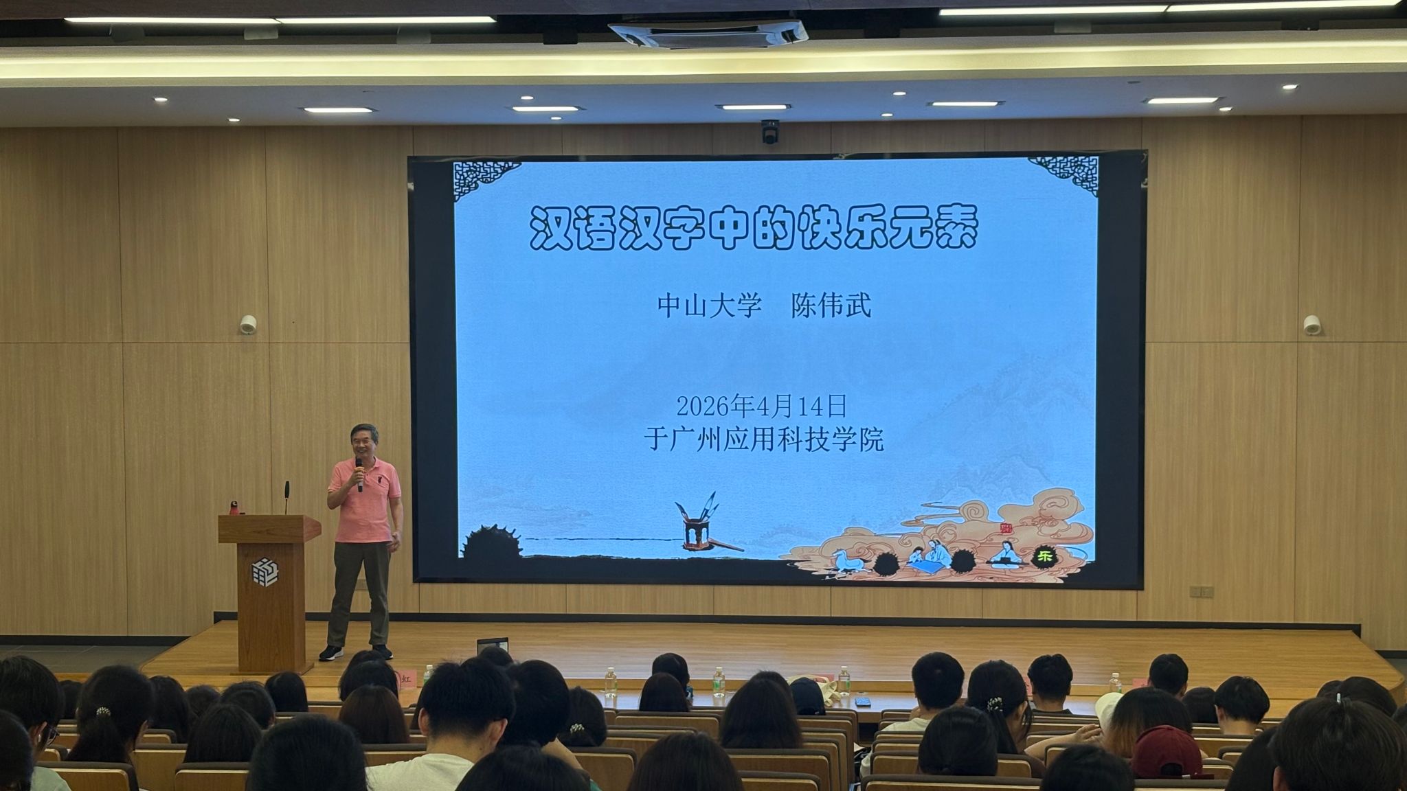 4月14日下午,“百越大讲堂”第六十四讲在广州应用科技学院图书馆一楼报告厅举行。中山大学中国语言文学系二级教授、长江学者,博士生导师陈伟武教授应邀为我校师生作《汉语汉字中的快乐元素》专题讲座。学校团委、创意设计与建筑学院、文学与传媒学院相关负责人及300余名师生参加讲座。