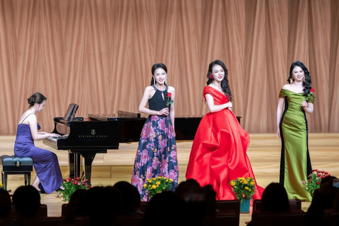 二重唱《吹响号角》以磅礴气势再现战争场景,两位演唱者铜管般的嗓音交织成震撼人心的音乐画卷。艺术歌曲《不要问》注重旋律性和情感表达,其美妙的音调传递出一种独特的忧郁风情。男高声联唱意大利歌曲《请你别忘了我》和《热恋中的战士》,将意大利的浪漫风情与阳光气息娓娓道来。合唱《祖国颂》气势如虹,歌声中饱含对祖国繁荣昌盛的赞美,表达矢志“实现中华民族伟大复兴”的愿景。