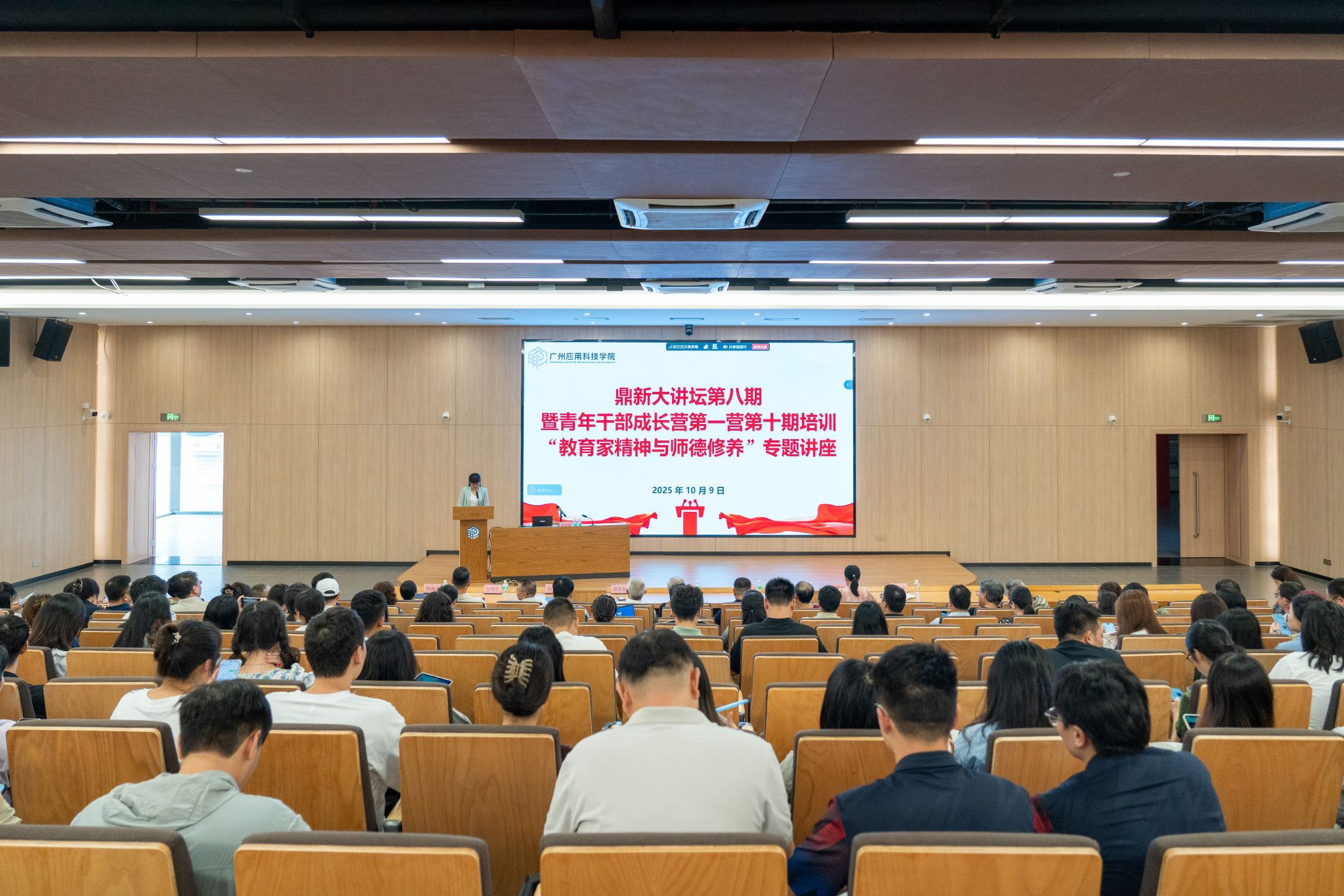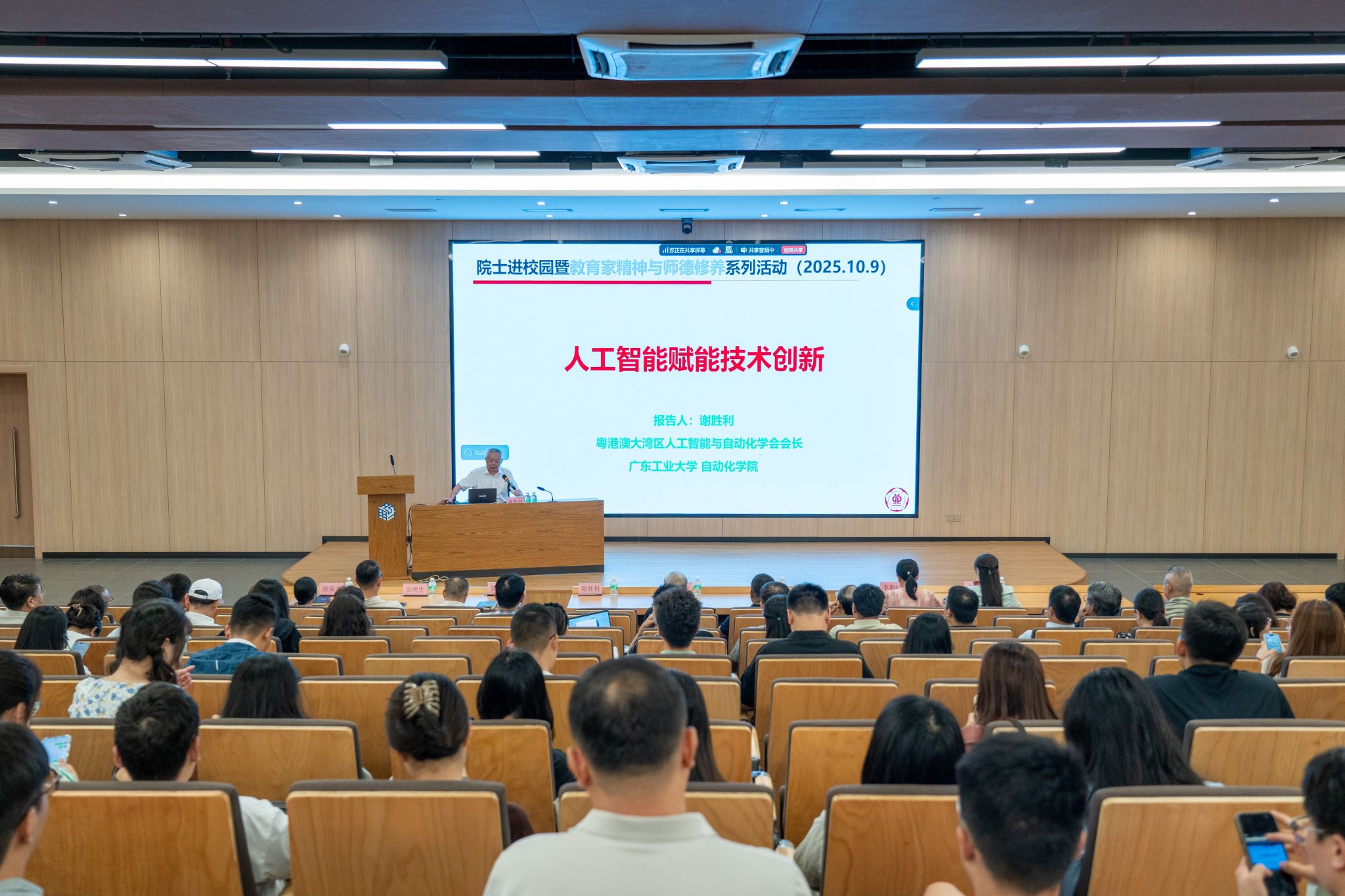 为深入学习贯彻习近平总书记关于教育的重要论述,积极响应广东省2025年师德建设主题教育月活动,进一步加强和改进新时代师德师风建设,10月9日,广州应用科技学院鼎新大讲坛第八期暨青年干部成长营第一营第十期培训在肇庆校区图书馆一楼报告厅举行。俄罗斯工程院外籍院士,广东工业大学教授、博士生导师谢胜利受邀作《人工智能赋能技术创新》专题讲座。全体校领导、中层干部、科级干部、系主任、党支部书记及辅导员参加学习,校长助理、党委教师工作部部长、人事处处长李根珍主持讲座。