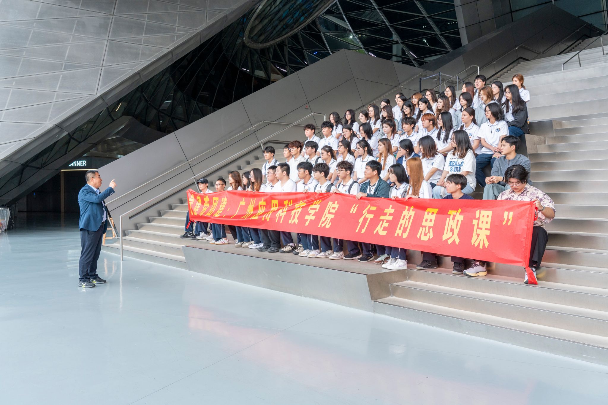 2026年是“十五五”开局之年,广州应用科技学院将党委书记“思政第一课”与党建带团建深度融合,以“行走的思政课”创新形式,把课堂搬到改革开放前沿阵地,让师生在实地实景中感悟思想伟力、汲取奋进力量。这种走出校园、走进社会的思政教学模式,打破了传统课堂的时空界限,让理论宣讲更接地气、更具感染力,实现了思政小课堂与社会大课堂的同频共振。