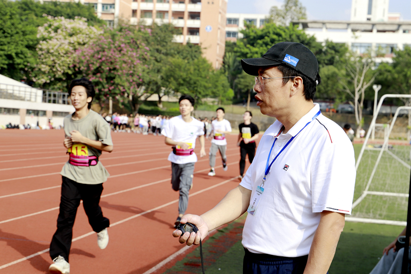 11月17日上午,由广东省教育厅组织开展的广州大学松田学院学生体质健康抽测工作,在我校足球场举行,480名学生接受现场测试。我校庞永师校长(左一)在社会体育系主任张军(中)的陪同下,来到体质健康抽测现场,代表...