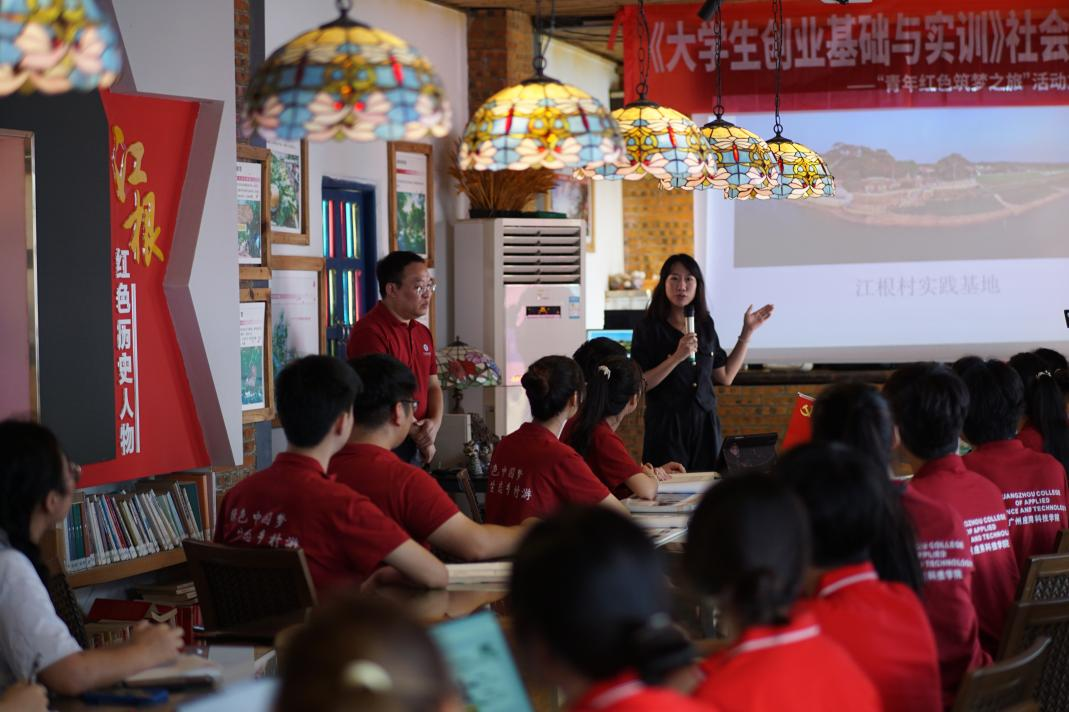 社会实践课程围绕《创业基础与实训》课程教学内容,结合学生兴趣爱好、专业特长,在广州应用科技学院组建跨院系、跨专业选课班级。依托青年红色筑梦之旅活动,在佛山市江根村开展乡村振兴社会实践课程教学。将思想政治教育、专业教育与创新创业教育深度融合,打造一堂主题突出、内容丰富、特色鲜明的思政大课、实践大课、劳动教育大课,引导教育广州应用科技学院青年大学生牢记总书记嘱托,感恩奋进,扎根中国大地了解国情民情,为全面建设社会主义现代化国家贡献青春力量。