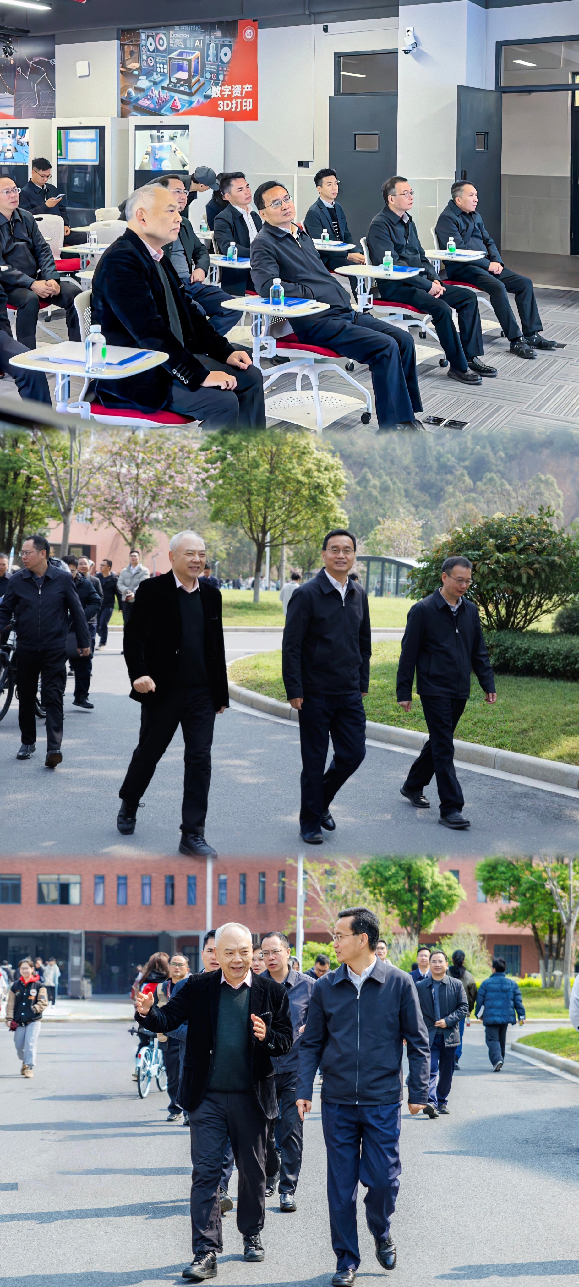 张爱军书记一行参观了学校的建设情况,实地走访了学校人工智能研发中心和XR实验室,深入了解DeepSeeK大模型在教育场景的本地化应用进展。张爱军书记对学校的办学成绩予以充分肯定,对学校今后的发展提出了指导意见。