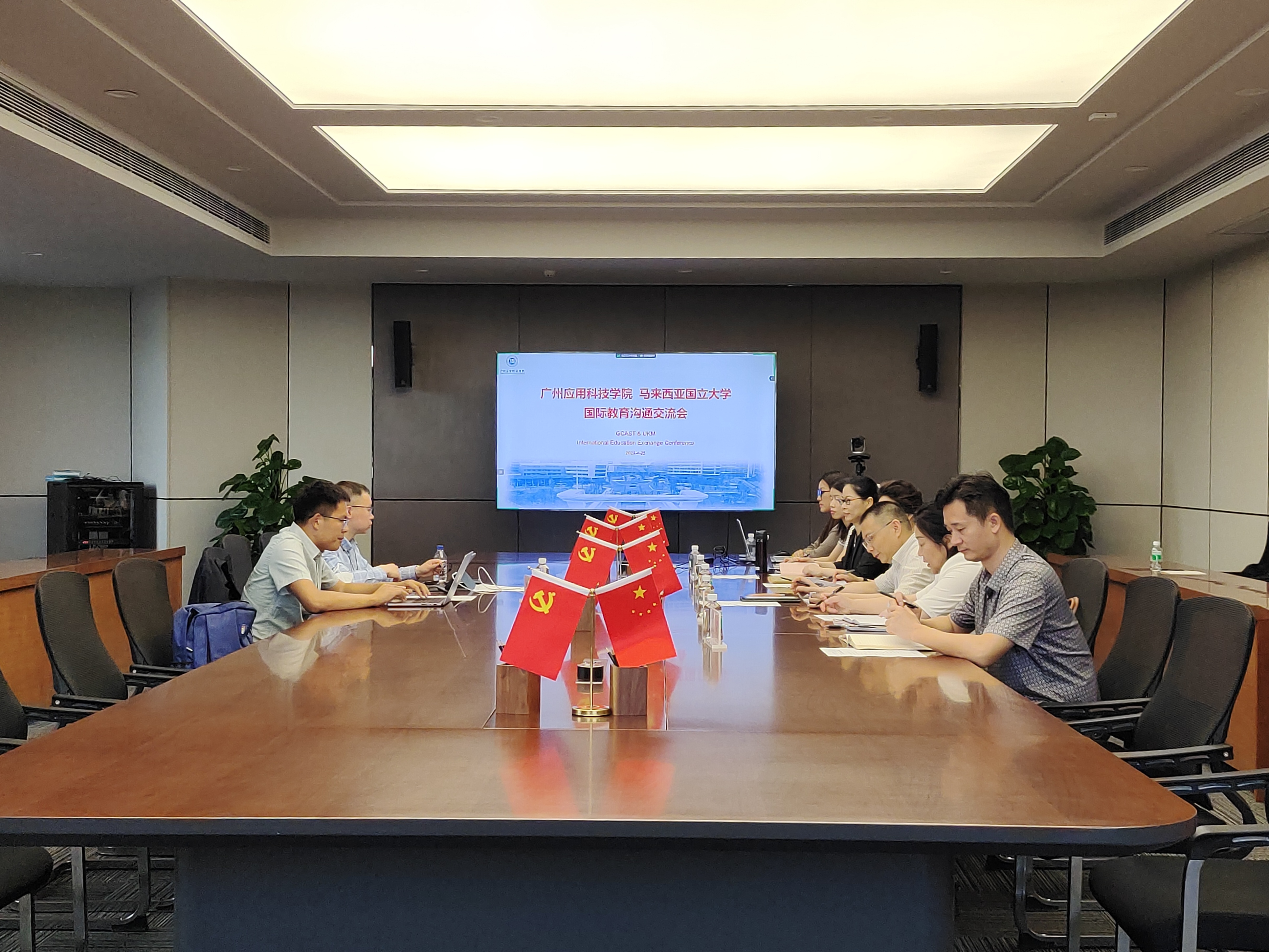 此次会议由国际合作与交流处单新荣处长主持,会议上首先由主持人介绍参会领导及嘉宾,由常务副校长吴舸致欢迎辞并向来宾介绍了本校发展与规划。随后由马来西亚国立大学代表魏中贺发表讲话,向参会人员介绍了马来西亚的留学优势、教育现状、区域地理人文及学校在专业学科、教学科研、师资生源等基本情况。与会人员围绕双方资源优势、基于院校发展需求进行多模式升学、联合培养方式等内容展开讨论并交换意见。