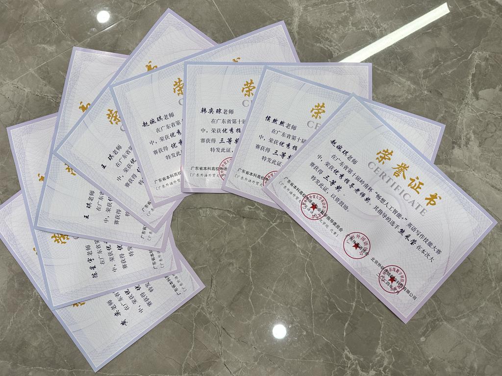 国际教育学院组织“畅想人工智能+”征文比赛,根据比赛结果评选出本院最优秀的8名参赛选手,其中专业英语组3名,分别为熊采莹、林海燕、曾凯祺,非专业英语组5名,分别为符升一、崔雨宸、王雨璇、吴文雅、张芸。国际教育学院安排了韩奕琼、陈星宇、黄奕、侯然然、赵婉琪、王琪等6位老师对这8位同学进行了精心指导,并安排这8名同学代表学院参加了5月12号的复赛。最终符升一、熊采莹、张芸等三位同学喜获大赛三等奖;吴文雅、崔雨宸、王雨璇、林海燕、曾凯祺等五位同学获得大赛优秀奖。六位指导老师均获得优秀指导老师奖。希望获奖的师生再接再厉,为国际教育学院争取更多的荣誉!