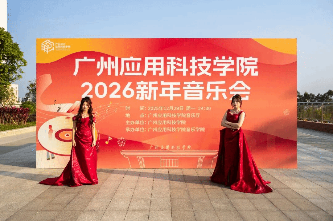 岁末的钟声即将敲响,2025年的篇章写至终章,一场以青春为名、以艺术为媒的新年盛会在广州应用科技学院肇庆校庆举行。12月29日晚上,“融音廿五,乐启新程”2026新年音乐会在学校音乐厅举行。广州应用科技学院董事长王睿、党委宣传部部长李帆、教务处处长赵卓、音乐学院院长杨天君等领导出席音乐会,与师生代表共同观看演出,在这辞旧迎新的重要时刻,迎接这场生动诠释“适者大成”办学理念的青春礼赞,见证音乐艺术凝聚为与时俱进、追求卓越的育人力量。
