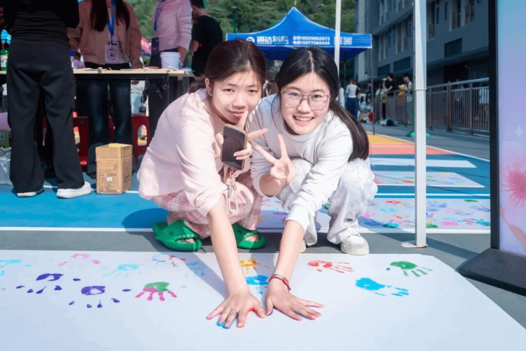“掌纹千色,共映她谱”打卡活动为同学们打造了本次活动的打卡点。纯色背景板上印着“我们生来不同,如同光谱中无法复刻的独特色彩。”同学们纷纷驻足,在板上按下彩色的手印。掌纹交错,是独一无二的个体印记。多种色彩在此相遇,汇聚成了一幅由无数个“她”共同绘制的生命图谱,映照着女性群体最真实、最绚烂的模样。