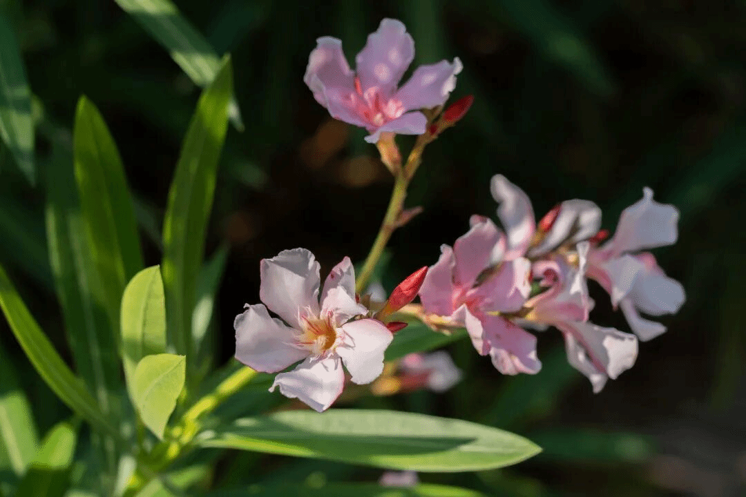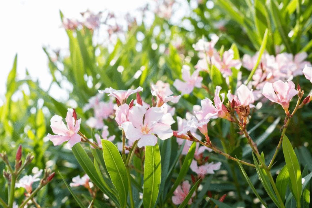 从夹竹桃的粉白清丽、娉婷摇曳