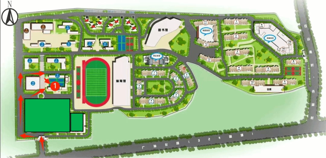 肇庆校区:从东门进入(广东省肇庆市鼎湖区莲乐路与莲花路交叉口正北方向594米左右)