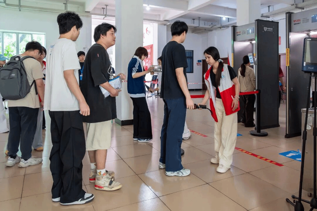 暖心服务,助力考生从容应考。为给考生营造便捷、温馨的考试环境,学校在考点设置了考生物品存放区、医务驻点等服务站点,配备专人全程提供咨询引导服务。安保人员与学生志愿者提前到岗,精神饱满地投入工作,耐心为考生指引考场方向,协助处理各类临时需求。