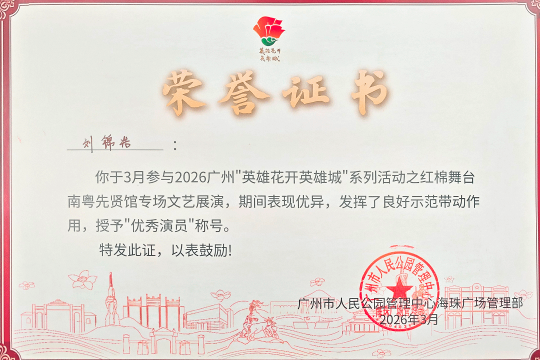 演出现场,广州应用科技学院学子精神饱满、仪态大方。凭借扎实的专业功底、沉稳的舞台表现力和真挚动人的情感,他们完美诠释了两部作品的精髓,充分展现了广应科学子的青春风采与专业素养。演出圆满结束后,广州市人民公园海珠广场管理部作为专场承办单位,为全体参演学生颁发了“优秀演员”荣誉证书,并向学校及两位指导老师致送感谢信,对学校师生的精心筹备、精彩演绎以及为活动圆满举办作出的积极贡献,给予了充分肯定与高度认可。