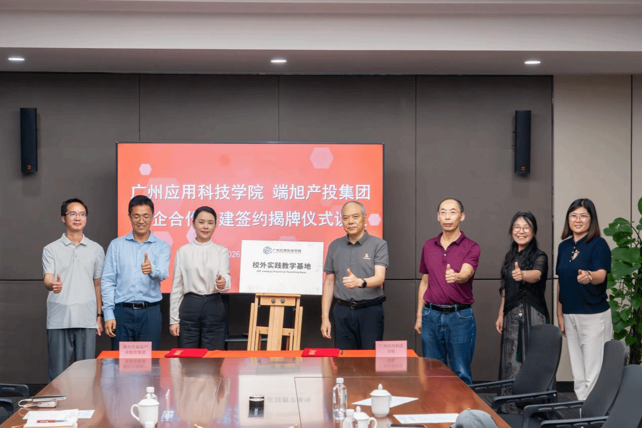 为深入贯彻落实国家关于深化产教融合的战略部署,推动数字技术人才培养与产业数字化发展需求精准对接,4月14日,广州应用科技学院与肇庆市端旭产业投资集团在校举行校外实践教学基地揭牌仪式,正式建立校企协同育人合作关系。