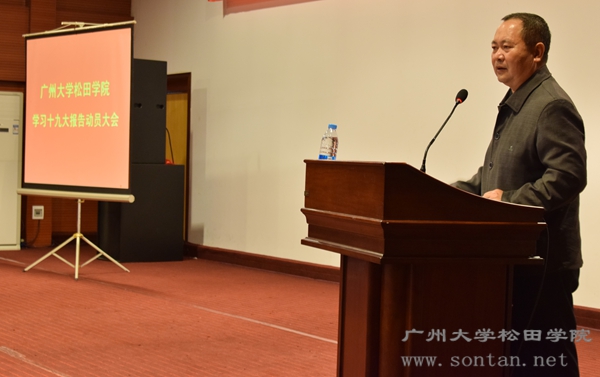 松田网讯(记者:李帆 报道)为深入学习领会党的十九大报告的实质内涵,认真抓好十九大精神的贯彻落实,11月28日下午,我院党委组织全体党员学习党的十九大报告精神,部署学院学习贯彻党的十九大精神活动第一阶段的日程安排,党委书记蒋茂能主持了本次学习会。