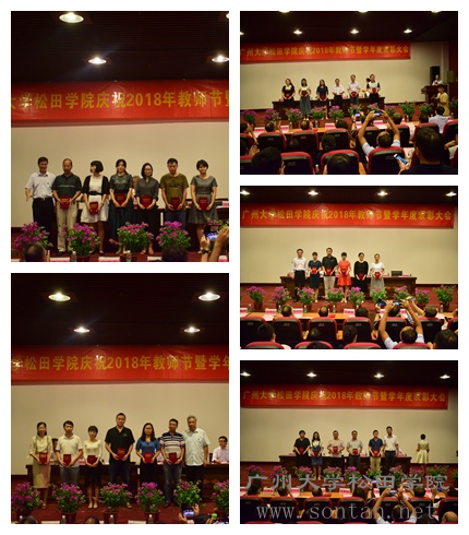 刘剑锋董事长、庞永师院长、李金飞副书记、李江凌副院长、李文鹏副院长分别为获得广州大学松田学院年度优秀教师、先进工作者颁奖。