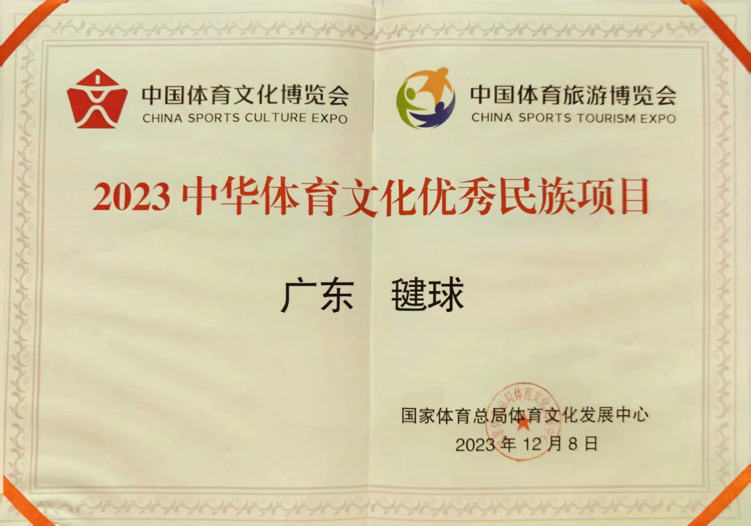 2023中华体育文化优秀项目申报共收到来自全国25个省区市推介的338个项目。经过评选,在全国范围内推选出49个中华体育文化优秀项目,其中优秀节庆项目9个、优秀民俗民间项目28个、优秀民族项目12个。其中,毽球是广东唯一获评的优秀民族项目。