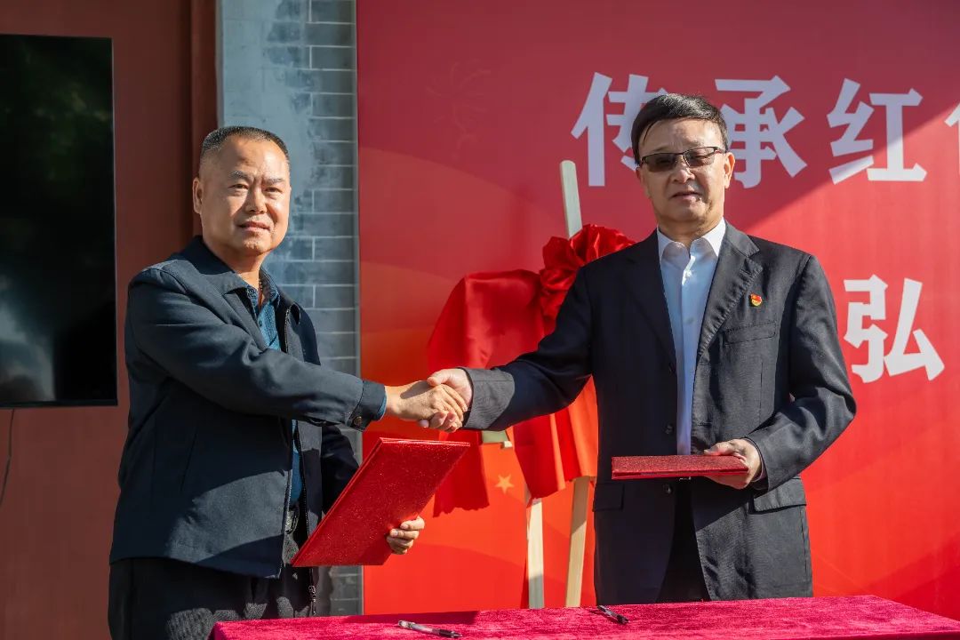 ▲ 我校马克思主义学院院长李江凌(右)与叶挺独立团团部旧址纪念馆负责人林剑清(左)签订共建大学生思想政治教育实践基地合作协议。