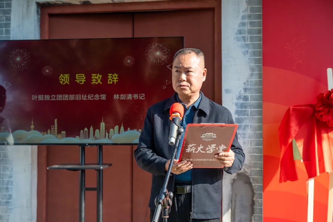 叶挺独立团团部旧址纪念馆副馆长林剑清在揭牌以上致辞。他首先代表纪念馆向到来的老师以及同学表示热烈欢迎,向支持纪念馆工作的学院领导、老师表示诚挚的谢意。他表示,希望双方深度合作,研发精品课程,打造“薪火·红色思政大课堂”,培育优秀青年志愿服务团队和服务项目,为广州应用科技学院师生提供实践、学习、研究和探索的平台,进一步推动新时代革命文物工作与学校思政课改革创新融合发展,切实推进“大思政课”建设走深走实。