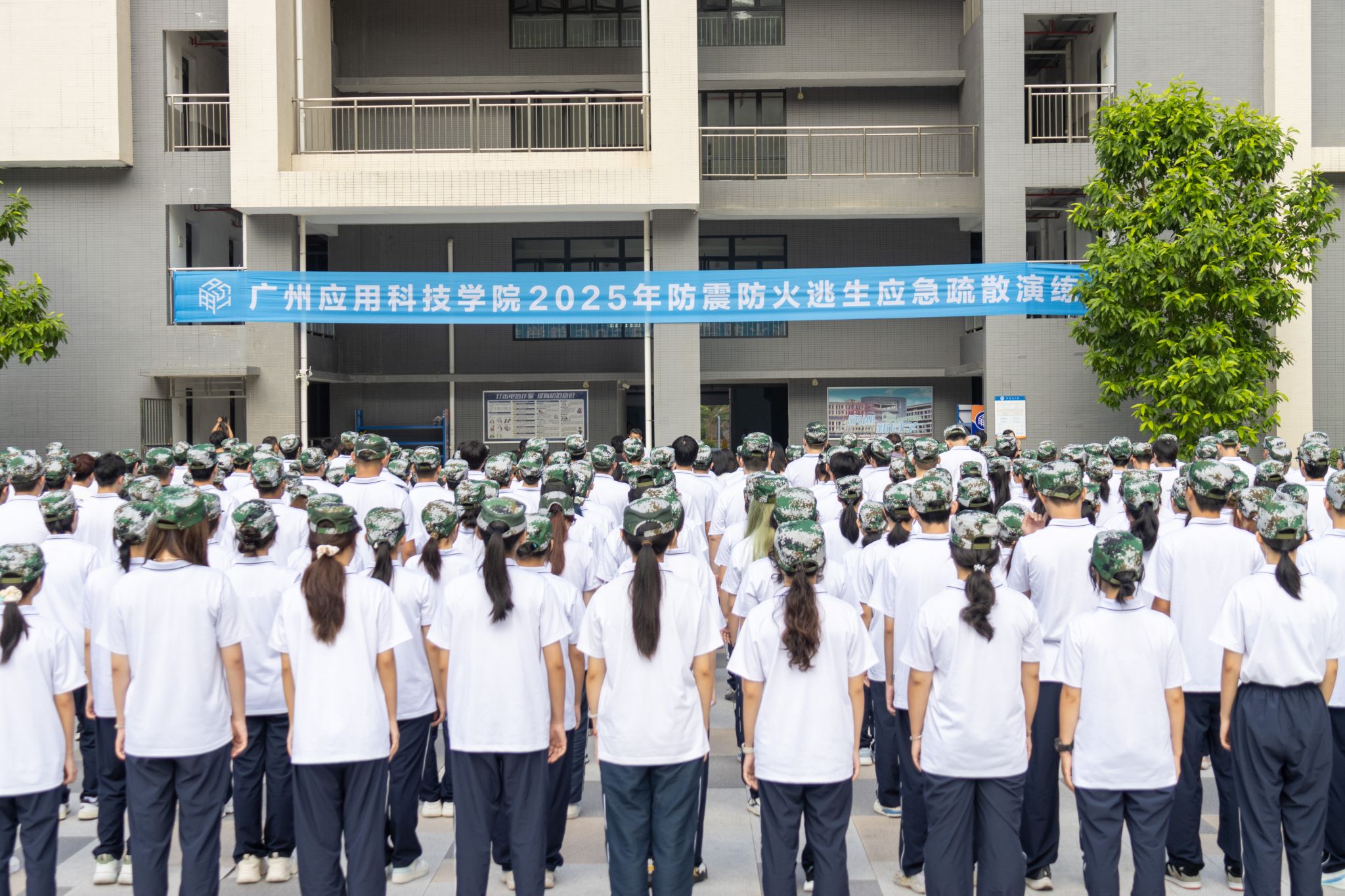 晨曦初照,书香满园。9月11日上午8时30分,广州应用科技学院校园内骤然响起一阵急促的警报声——2025级新生防震防火应急疏散演练正式拉开帷幕。这是一场关乎生命的必修课,是一次锤炼应急能力的实战演练,更是广应科为新生准备的第一份“安全礼”。