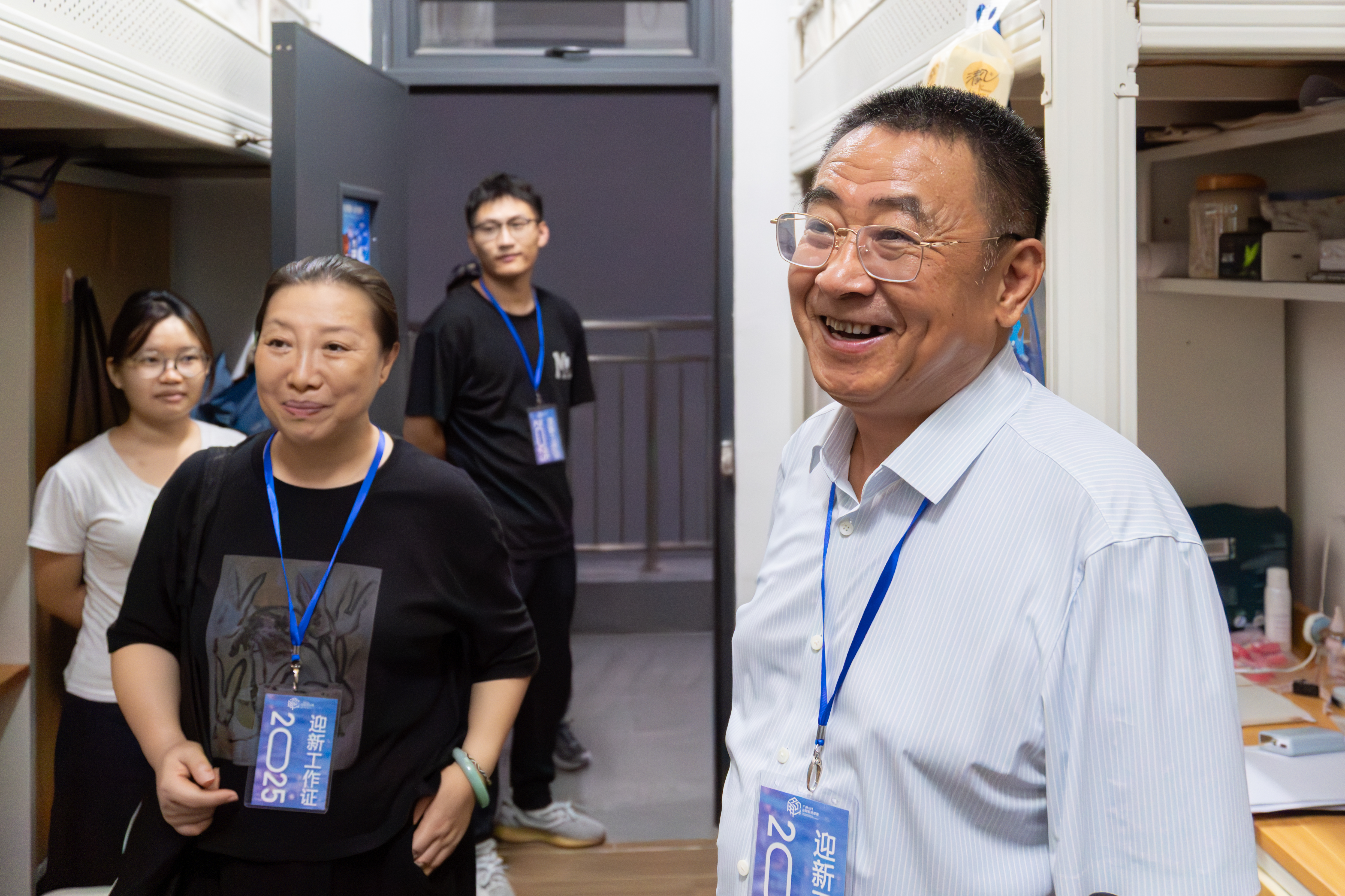 8月31日晚,秋风送爽,在9月1日秋季学期开学前夕,广州应用科技学院校园内洋溢着温馨与期待。校长张光宇,党委书记陈光团,常务副校长吴舸,党委副书记、副校长刘志新,校长助理吴明生分别带队,深入学生宿舍走访看望2025年普通专升本新生,为他们送去新学期的问候与关怀。校长办公室、学生处、各二级学院相关负责人陪同走访。