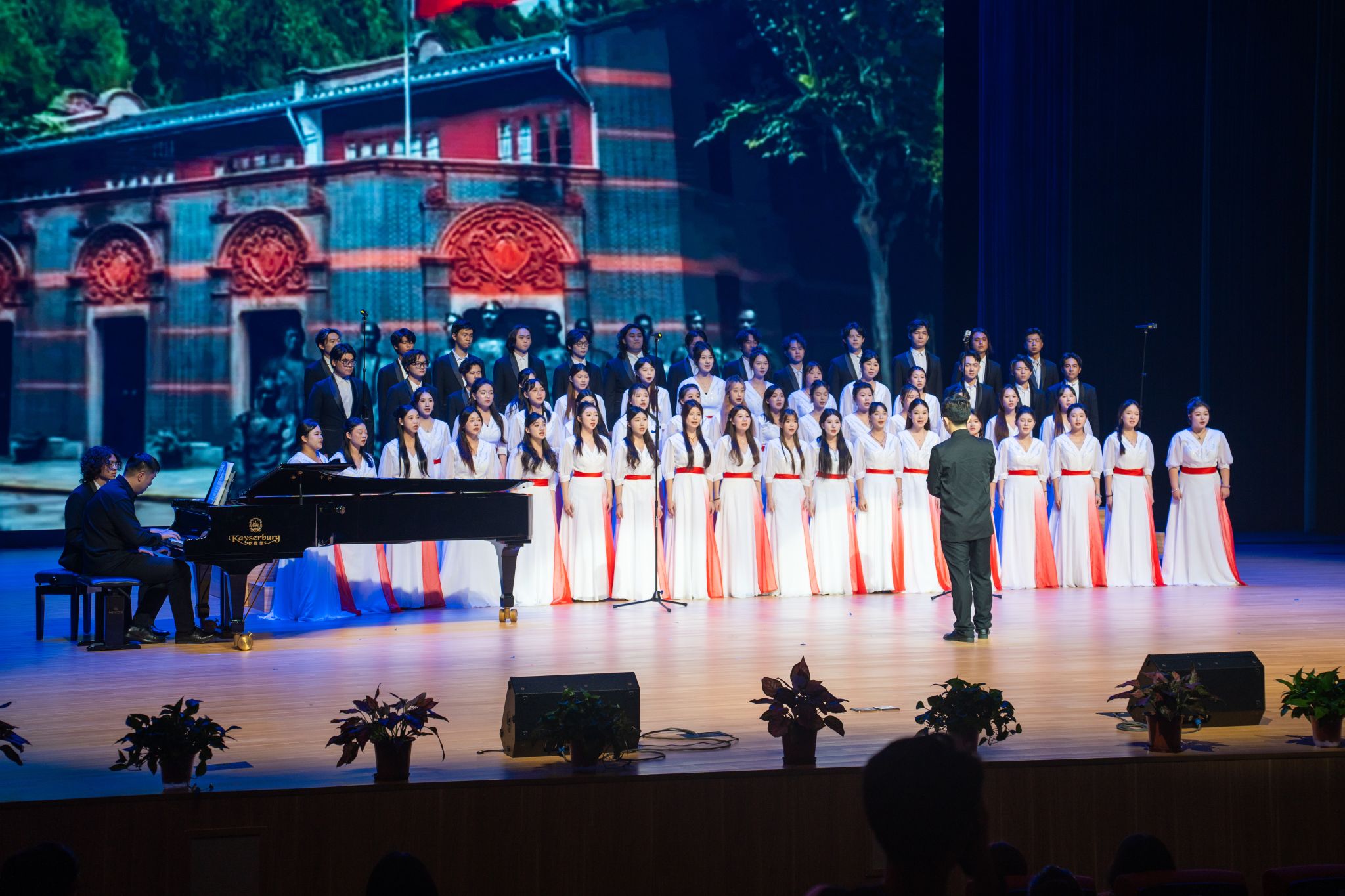 音乐会精心设计“启·星火燎原”“薪·砥砺前行”“赋·同心筑梦”三大篇章,融合合唱、器乐、情景剧、舞蹈等多种艺术形式,既是一场精彩纷呈的视听盛宴,也是一堂润物无声的“文艺思政课”。激昂的旋律与青春的歌声交织,引导师生回顾奋斗历程,感悟时代伟力,进一步增强民族认同感与时代责任感,坚定为实现中华民族伟大复兴贡献力量的信念。