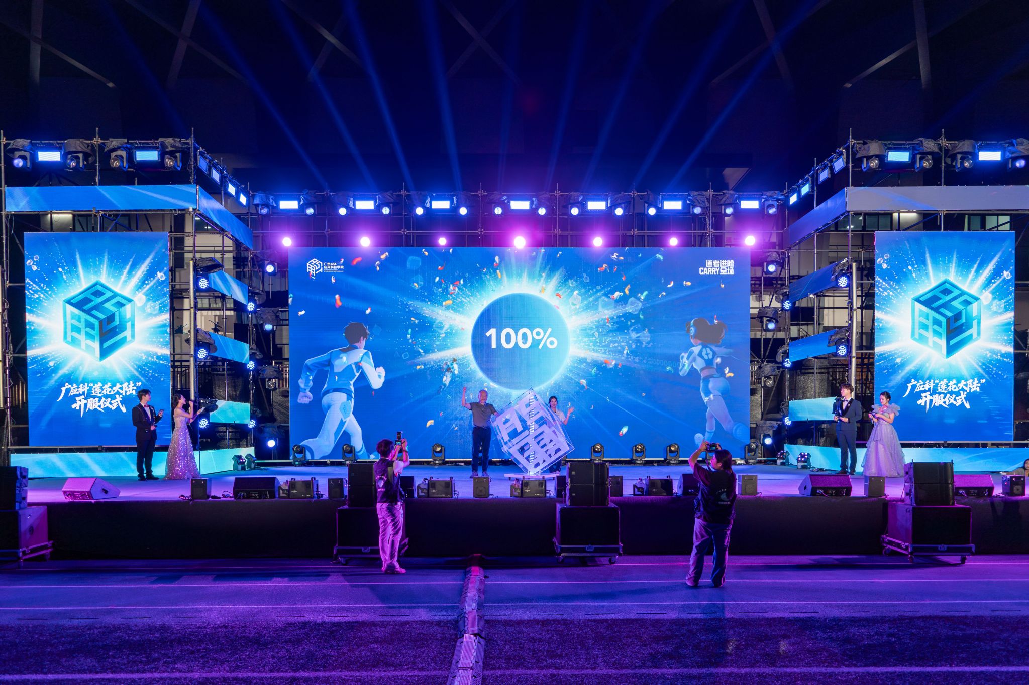 2025年9月22日晚,广州应用科技学院足球场迎来一场别开生面的晚会——“莲花大陆”开服仪式暨“适者大成”品牌发布及2025级新生文艺晚会。在科技感与青春气交融的氛围中,全体2025级新生以“玩家”身份正式登陆“莲花大陆”,开启大学阶段的专属成长旅程。