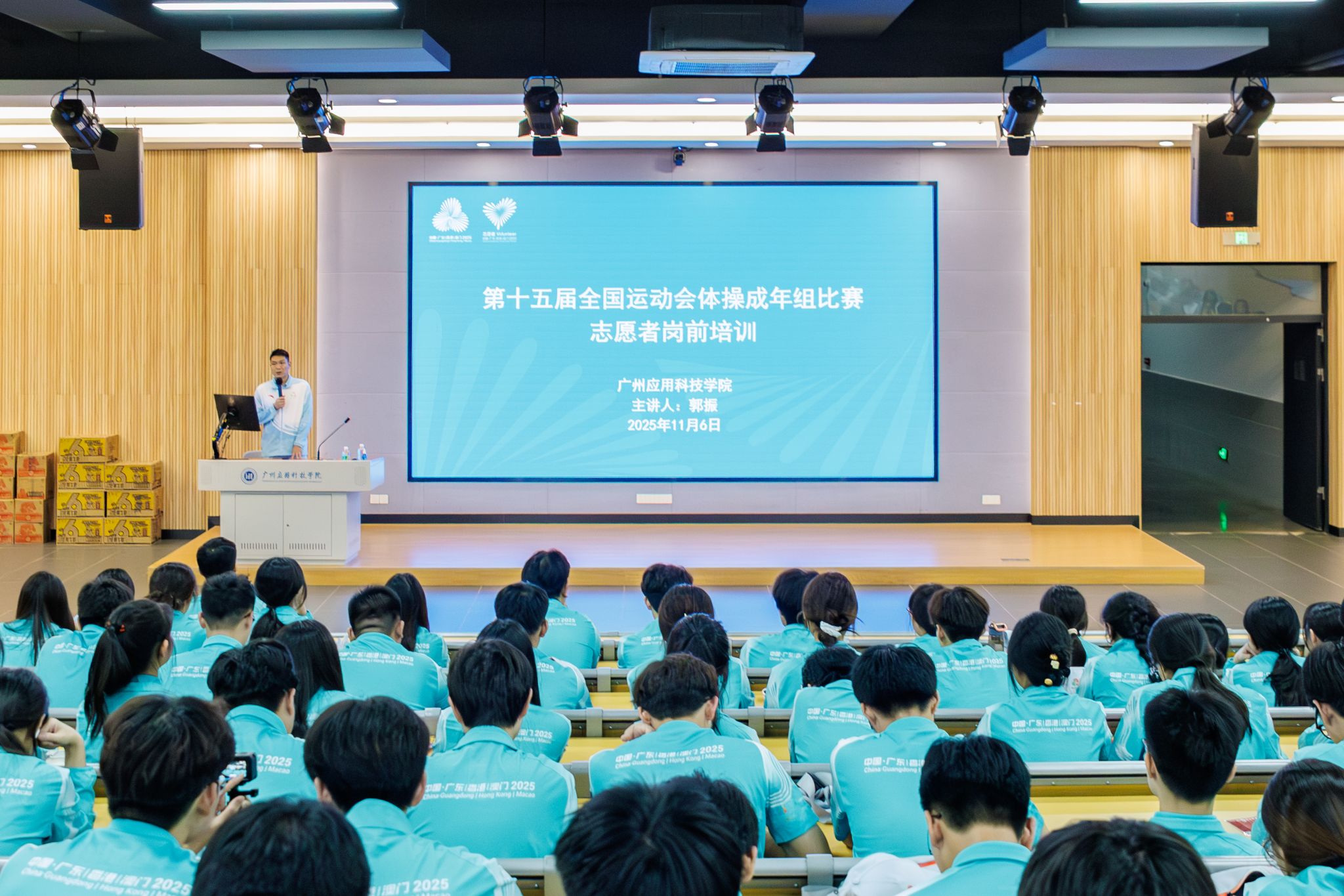 迎着粤港澳大湾区蓬勃发展的时代浪潮,第十五届全国运动会的火炬在这片热土上点燃。作为我国规模最大、水平最高的综合性运动会首次由粤港澳大湾区联合承办,十五运会不仅是展示国家形象、促进区域协同发展的重大契机,更是推动全民健身、激发社会活力的重要平台。在这场体育盛事中,广州应用科技学院积极响应,作为肇庆赛区派出志愿者人数最多的高校,403名赛会志愿者以高度的责任感和饱满的热情,组织起一支名为“小海豚”的志愿者队伍,在已完成U18足球、毽球、体操(青年组)等项目的志愿服务后,即将在十五运会开幕之后,开展备受瞩目的体操赛(成年组)的赛会志愿服务。