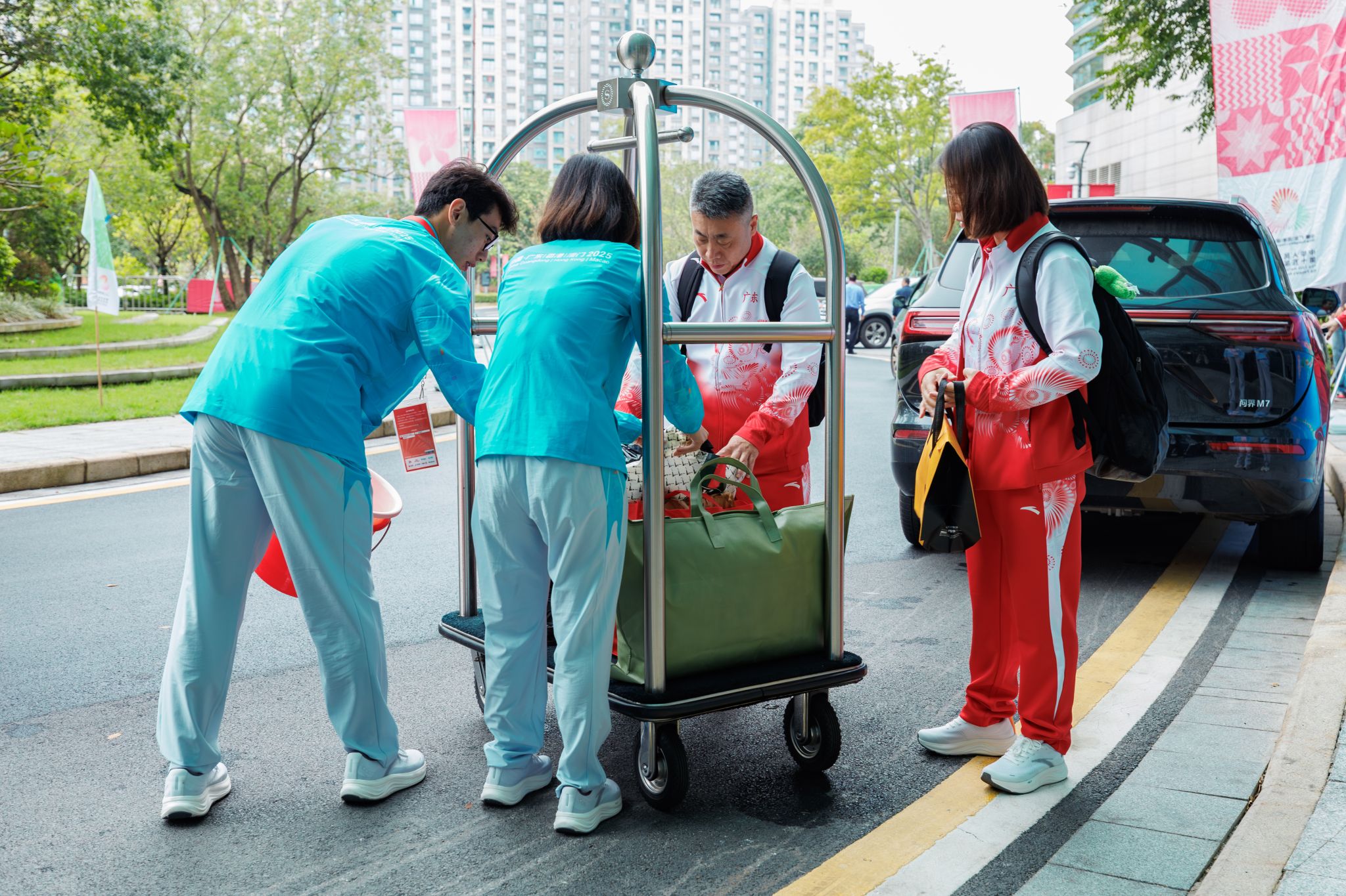 赛事未开,服务先行。广应科的十五运会赛会志愿者从11月6日开始,在比赛正式举办之前已经投入工作。在体操赛运动员接待指定酒店——喜来登酒店,志愿者们提前到岗,将服务做细做实。他们主动协助运动员搬运行李,引导完成签到登记,并提前备好运动员证件,确保接待流程顺畅高效。他们用细致周到的服务,为远道而来的运动员营造了温馨便捷的“初体验”,展现了东道主的热情与专业。