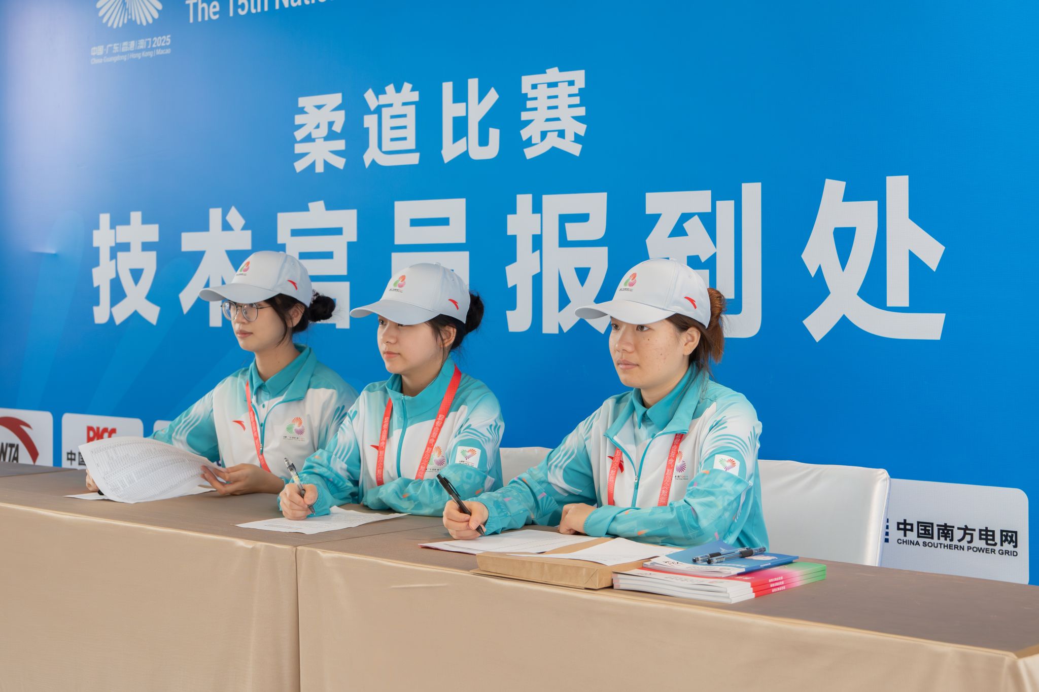 值得一提的是,广州应用科技学院不仅是本次柔道赛事的保障力量,更是整个肇庆赛区志愿服务的中坚。作为志愿者派出人数最多的高校,学校组织408名“小海豚”赛会志愿者,先后服务U18足球、毽球、体操等项目,并将继续投身后续赛事,以专业素养与青春热情,成为全运会一道亮丽的风景线。