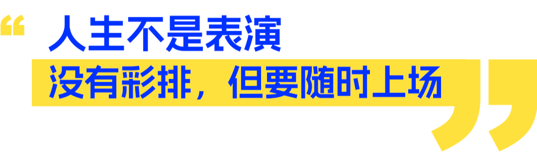 “不同于日常表演,人生的舞台是没有彩排的,不管眼下是什么样的环境,都要学会调整好自己的心态,随时准备上场”