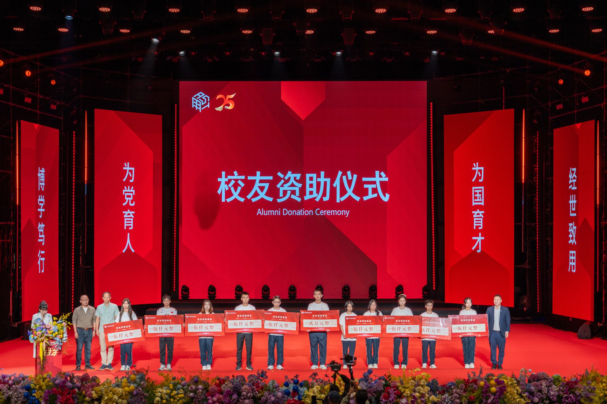 大会现场涌动着浓厚的校友情谊。校友代表通过视频与现场方式感恩母校,并捐赠了天安门升旗指挥刀、书画长卷《山河映校 适者大成》、山水画《山高水长》等珍贵礼物。更为感人的是,多位校友共同捐资设立助学基金,现场为受助学生代表颁发资助金,并举行了校友联络大使荣誉证书颁发仪式,深刻诠释了“母校是校友永远的精神家园,校友是母校最宝贵的财富”的深厚情谊。