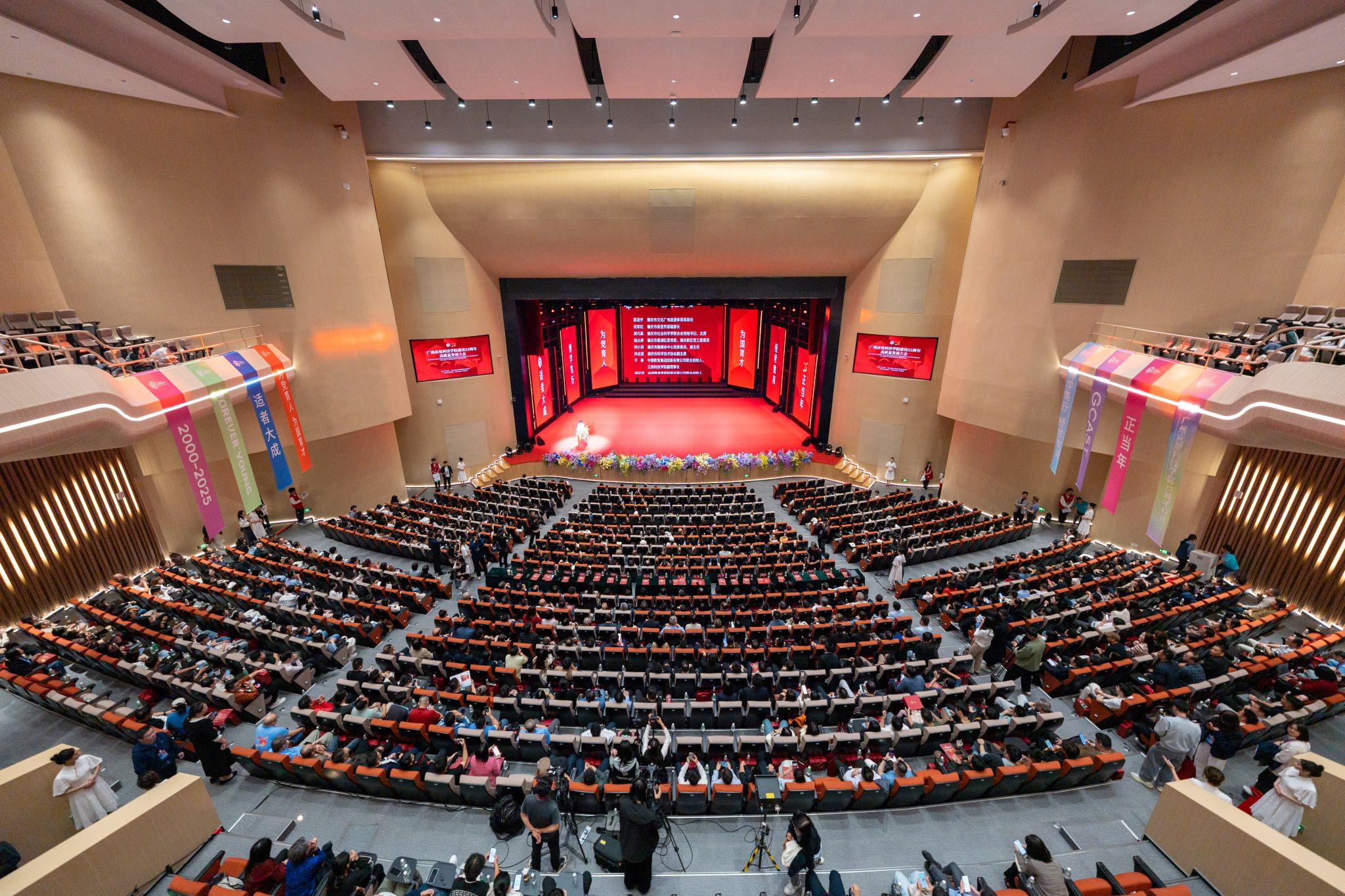 当天下午,建校25周年高质量发展大会在莲花大剧院隆重召开。肇庆市有关领导、广东省民办教育协会负责人、中国教育集团领导、省内外兄弟院校代表、合作企业精英、媒体朋友、海内外校友及师生代表共聚一堂,气氛热烈。