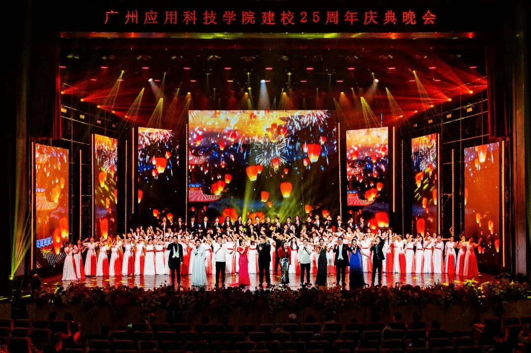 夜幕轻垂,灯光如昼,晚风吹拂着每一位师生校友的心。在校庆如梦的夜晚,一场庆典晚会的大幕徐徐拉开,宛如一幅绚丽画卷在时光中展开,为广应科25周年华诞庆生。2025年12月21日晚上7时30分,广州应用科技学院二十五周年校庆庆典晚会在学校莲花大剧院隆重举行。中国教育集团控股有限公司联合创始人、江西科技学院副理事长于果,中国教育集团控股有限公司联合创始人、广东白云学院董事长谢可滔,中国教育集团控股有限公司董事会联席主席、执行董事、首席执行官,江西科技学院理事长喻恺,中国教育集团控股有限公司董事会联席主席、执行董事、广州应用科技学院董事长王睿等集团及成员学校领导,以及学校全体党政校领导、历任校领导、中层干部,合作企业代表,以及校友代表、师生代表共同观看演出。各届校友跨越山海奔赴母校之约,在校师生满怀热忱共襄盛举,全体嘉宾以艺术为媒回望廿五征程,以赤诚为翼共赴未来之约,在光影流转间定格属于全体广应科人的荣耀与感动。
