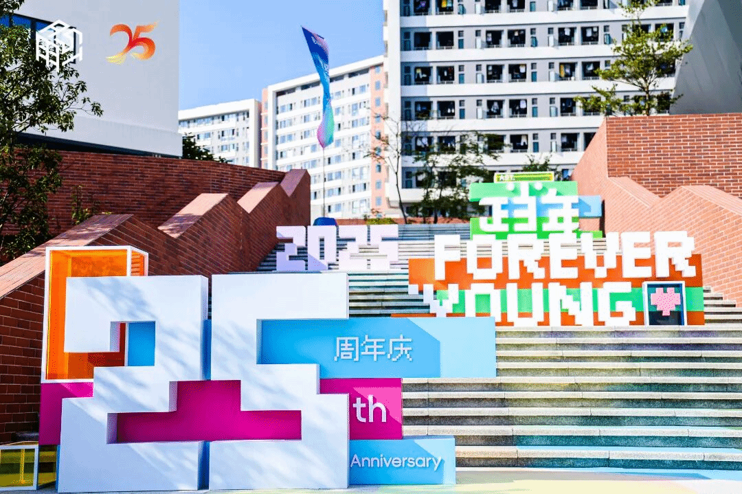 踏入校门,一个由方块像素构筑的奇幻世界便扑面而来。标志性的入口门头,将“25”这个数字与学院的文化符号巧妙拆解、重组,充满了复古电子游戏般的趣味与张力。这不仅是一道门,更是一个穿越的入口,宣告着今日一切的与众不同。