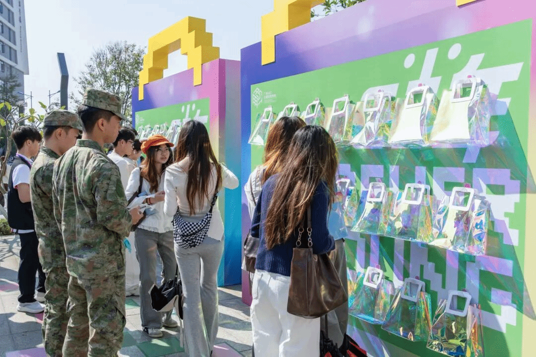 如果说打卡点是散落的星辰,那么丰乐渠沿岸的《像素市集》便是汇聚光芒的银河。这里人头攒动,堪称嘉年华的“能量心脏”。市集划分为探索启航、成果绽放、未来启航三大区域,宛如一部立体生动的“学生成长史”。从大一新生的奇思妙想,到大二、大三学子扎实的实操成果与精美手作,再到链接社会资源的未来体验站,“共生而不同”的像素精神在这里被具象化。非遗社的古法造纸、象棋社的智慧对弈、雅集社的煮茶品茗……每个社团摊位都是一个微缩的才华宇宙,吸引着人们驻足流连。