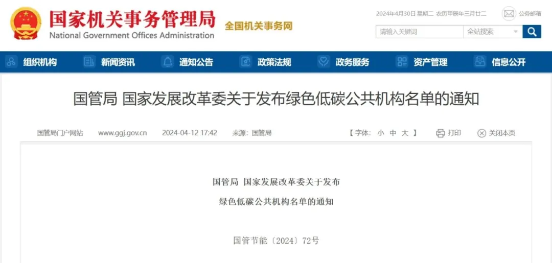 2023年9月,国家机关事务管理局、国家发展改革委印发《关于开展绿色低碳公共机构遴选工作的通知》(国管节能〔2023〕240号),聚焦绿色低碳技术推广应用,围绕适合公共机构场景的用能系统电气化、可再生能源应用、绿色低碳建筑建设建筑用能智能化管理、数据中心绿色化改造等5个技术方向,组织遴选一批体制机制系统完备、应用技术先进适用、低碳运行效果显著的绿色低碳公共机构。
