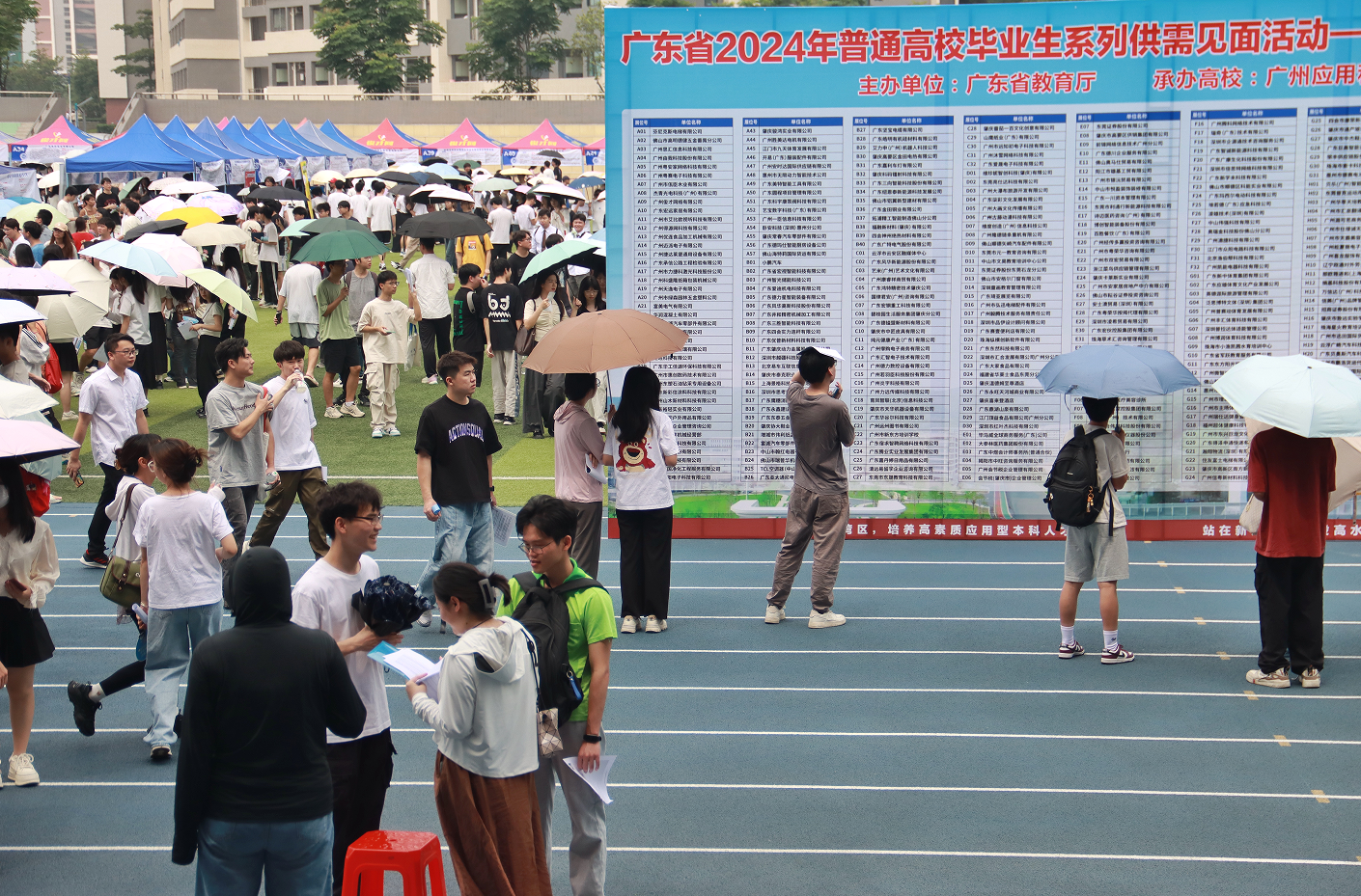 “你是学哪个什么专业?就业意向是什么?”“请问入职后是否有五险一金?大三学生可以去实习吗?”……5月17日上午,由广东省教育厅主办、广州应用科技学院承办的广东省2024届普通高校毕业生系列供需见面活动——应用型人才推荐专场招聘会在广州应用科技学院肇庆校区举行。超400家企业携超12000个岗位到现场“纳才”,小鹏汽车、风华高科多家知名企业现场向学生抛出“橄榄枝”。