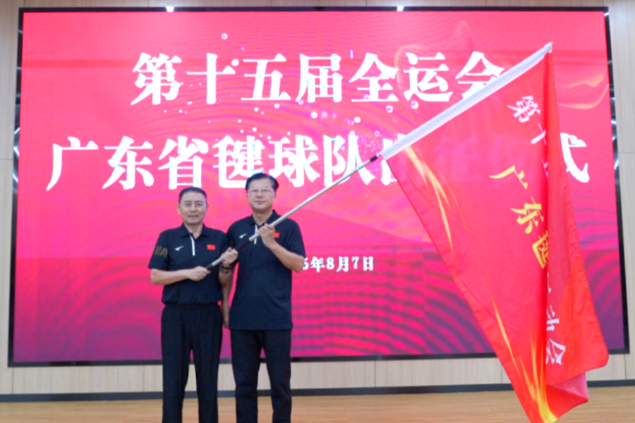 旗帜是方向,是力量,更是荣耀的传承。在授旗仪式上,广东省社会体育和训练竞赛中心主任蔡建祥挥舞队旗,将其授予广东毽球队领队张军,完成出征旗帜交接。蔡建祥主任在出征仪式中强调,要发挥广东体育军团精神,敢于拼、善于战、勇于胜,“三铁三硬铸军魂”。要以铁的纪律、铁的作风,硬的技术、硬的体能、硬的心态来迎接十五运会的挑战。同时指出要将“讲政治、守底线”摆在首位,严守规则的红线,尊重对手、敬畏裁判,以最昂扬的精神面貌投入比赛场,全力发挥最佳水平。