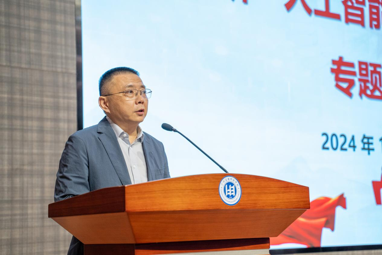 为进一步提升学校教育教学水平,深入贯彻我校人工智能赋能教育教学“八新”行动方案。11月19日下午,广州应用科技学院鼎新大讲坛第二讲“人工智能赋能教育教学”在行政中心一楼讲座厅举行。国教育发展战略学会副会长兼人才发展专业委员会理事长李志民应邀主讲。党委书记陈光团出席会议,副校长吴舸主持讲座并作总结讲话。副校长刘志新、校长助理李根珍、财务总监姚满金出席讲座,中层干部、各二级学院系主任及部分骨干教师代表参加讲座。