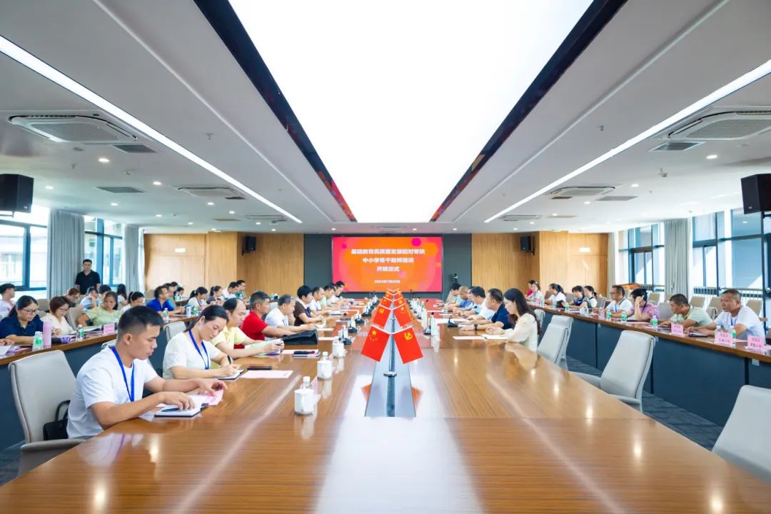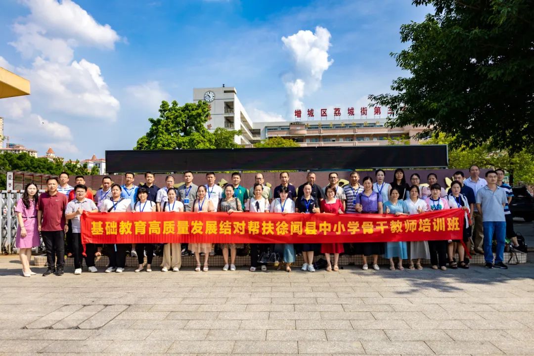 为贯彻落实省委、省政府关于推动基础教育高质量发展的工作要求,做好全口径全方位融入式帮扶粤东粤西粤北对口地区基础教育高质量发展工作,2024年7月21日至25日,广州应用科技学院举办对口帮扶湛江市徐闻县基础教育高质量发展中小学骨干教师培训班,来自徐闻县角尾乡中心小学、徐闻县西连中心小学、徐闻县下桥中心小学、徐闻县城北乡中心小学,以及广州松田职业学院对口帮扶梅州市五华县基础教育的各中小学校级领导、骨干教师共40人参加培训。