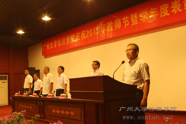 李江凌副院长在会上宣读《广州大学松田学院关于表彰2017-2018学年度十佳优秀教师(先进工作者)的决定》。
