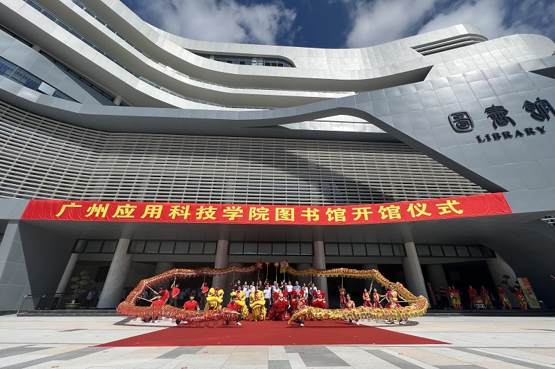 立足大湾区,培养高素质应用型人才;站在新起点,建设高水平应用型大学。在热烈的醒狮锣鼓声中,中教集团、学校董事会和党政校领导共同来到主礼台,拖动红绸装置启动无人机起飞,为学校肇庆校区图书馆正式揭牌。