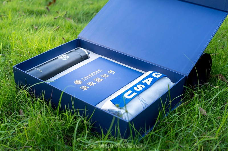 2022年广州应用科技学院新生录取通知书及礼盒正式亮相。今年,我校首次采用礼盒套装样式呈现录取通知书。