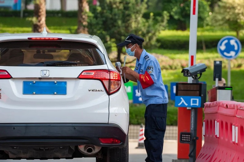 在疫情防控常态化的背景下,从校门口开始做好新生报到防控检测、测温、行李箱消杀确保“绿码”进校。做实、做细疫情防控工作,引导车辆和新生家长有序进校,确保学生报到安全顺畅。