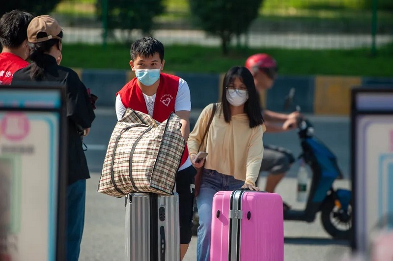 来自广州校区20级的百余名学生志愿者,积极投入到迎新志愿服务中,为前来报到的新生同学提供热情的服务。