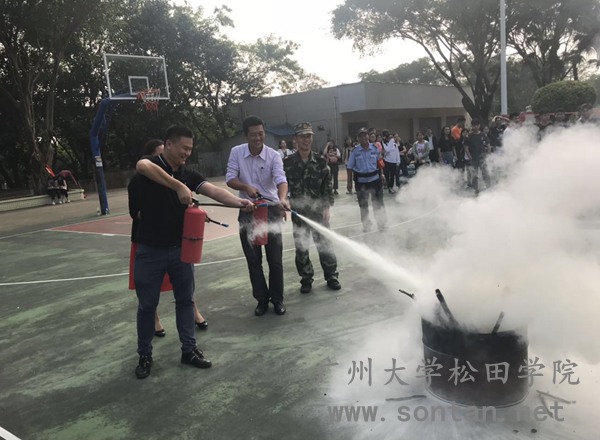 培训结束后,徐志扬带领师生来到本科行政楼西侧排球场,向在场人员演示如何使用消防器械。他边演示边为师生们讲解灭火器的有效使用方法并对使用细节进行了反复强调。在现场,副书记李金飞与副院长李文鹏带头参加消防演练,随着雄起的火焰一次次被灭火器扑灭,滚滚浓烟逐渐挥起散去,全体人员纷纷跃跃欲试,学习兴趣浓厚。
