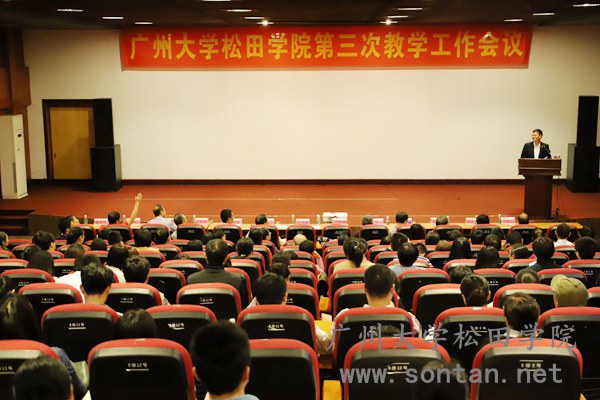 松田网讯(记者:李帆 黄佩珊 报道)11月9日下午,我院在行政楼多功能厅召开广州大学松田学院第三次教学工作会议总结大会。学院董事长刘剑锋,院长庞永师、党委书记王永云、党委副书记李金飞、副院长李江凌、副院长李文鹏,学院全体中层干部,各系(部)教研室主任、教务办主任和教师代表参加了会议。会议由党委书记王永云主持。