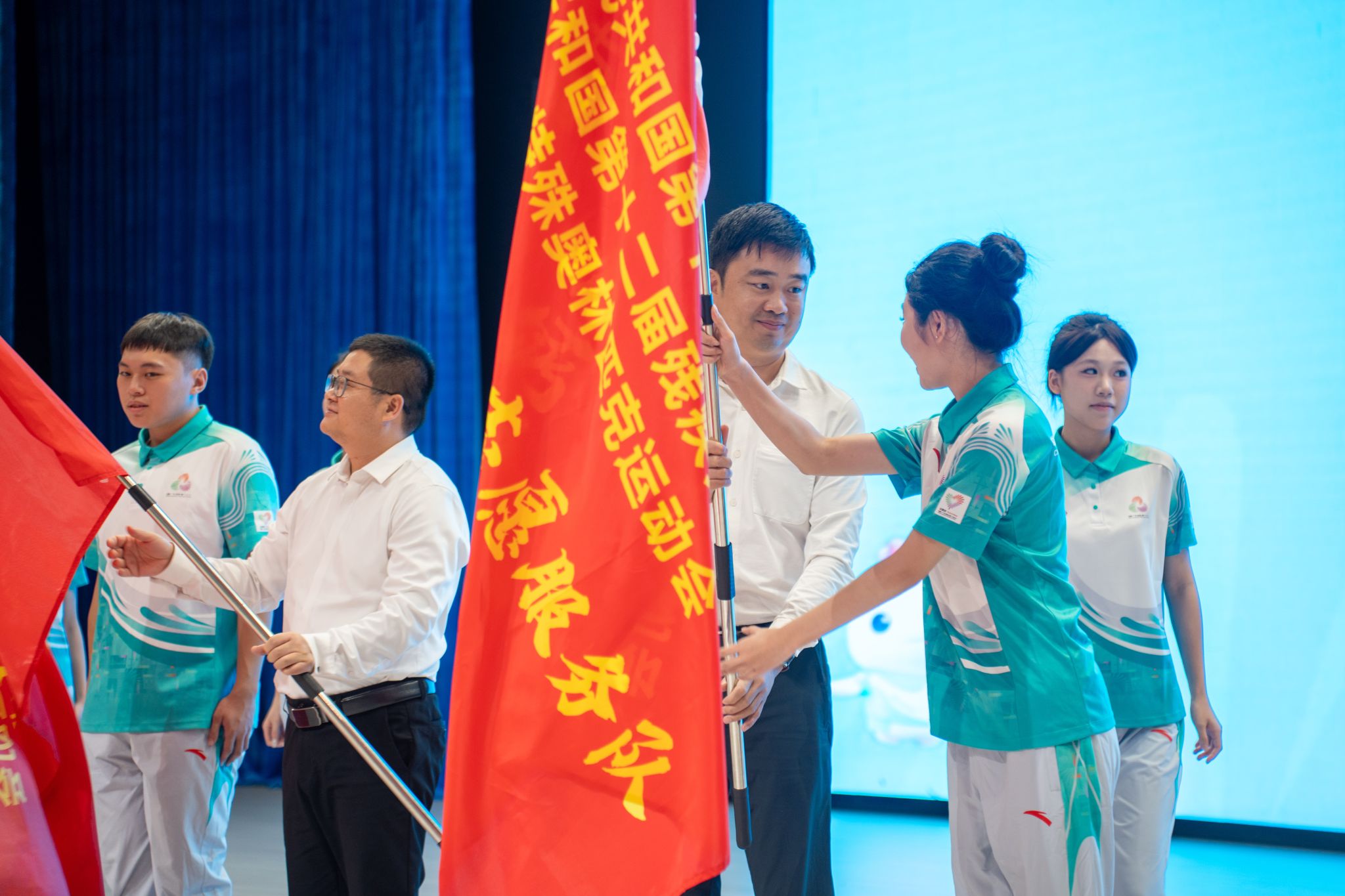 在授旗环节,市执委会志愿者工作部相关成员单位负责人分别为肇庆学院、肇庆医学院、广东理工学院、广州应用科技学院、广州华商学院以及城市志愿服务队授旗。志愿者代表挥舞旗帜,现场掌声雷动。随后,全体志愿者在领誓人带领下庄严宣誓:“为湾区添彩,为祖国争光!为你,更精彩!”誓言铿锵,展现了志愿者们服务赛会的坚定信念与昂扬斗志。
