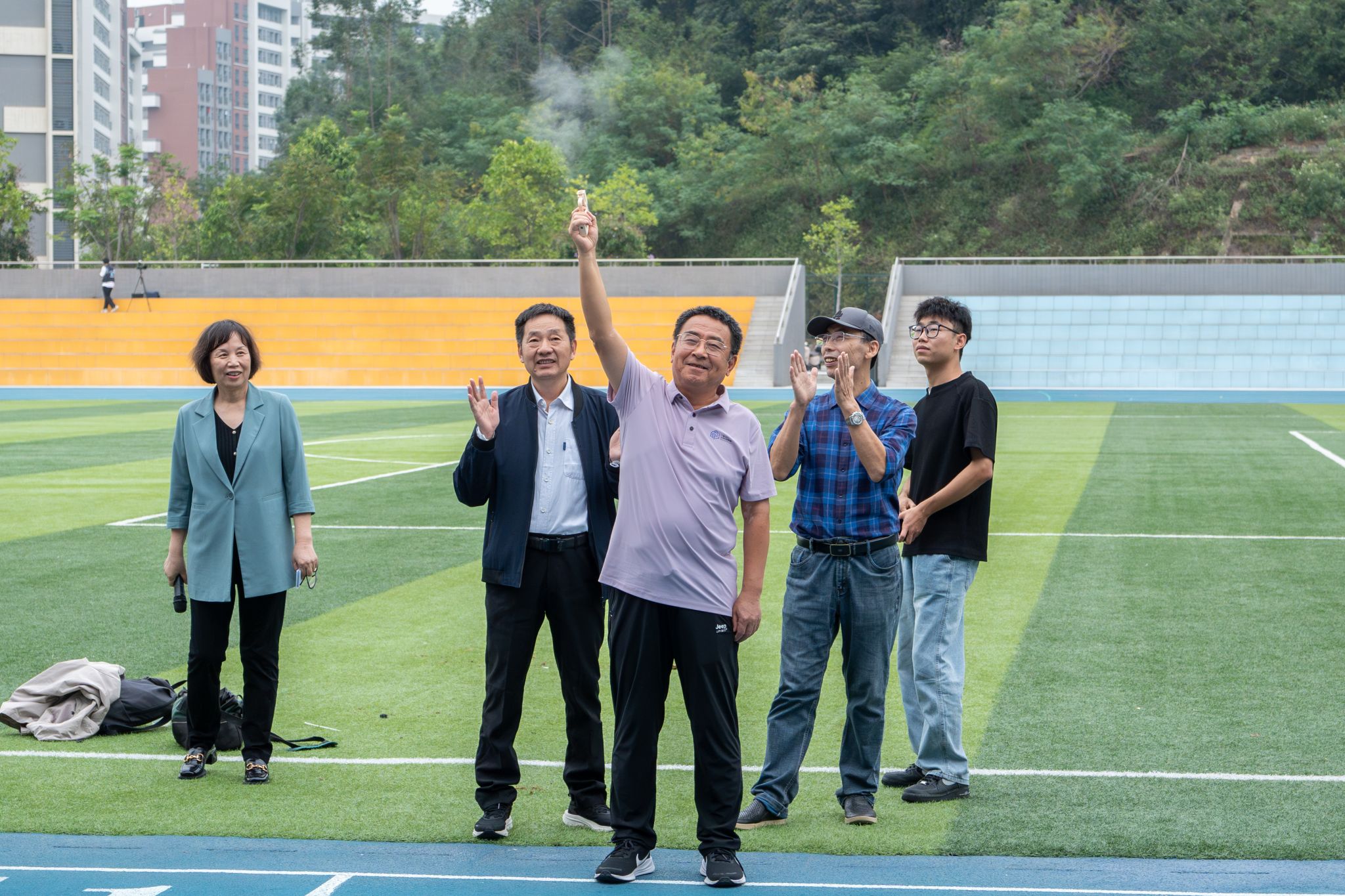 闭幕式在别开生面的12分钟健身跑中拉开序幕。党委书记陈光团鸣枪发令,全校师生、裁判员、运动员与工作人员共同踏上跑道,以轻松慢跑的方式传递“运动健身、健康生活”的理念。这场全员参与的健身跑,不仅展现了师生积极向上的精神风貌,更体现了学校推动全民健身、促进师生健康的坚定决心。