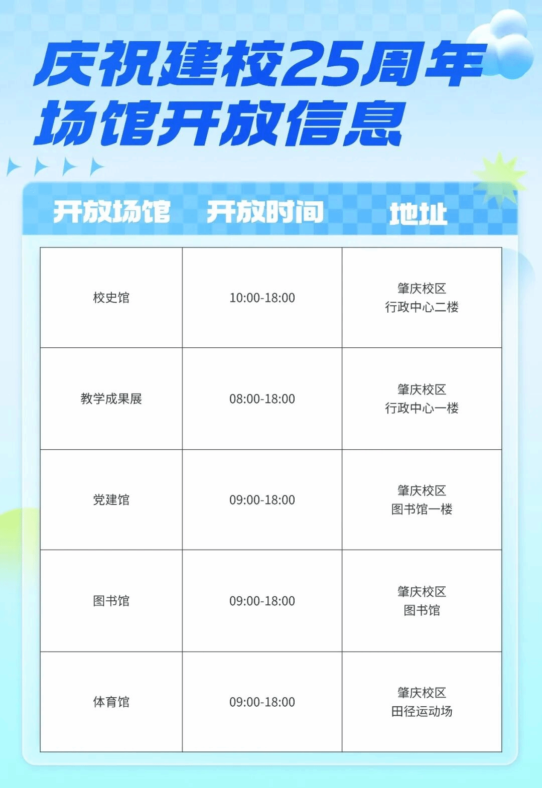 当日开放 数字校史馆、教学成果展、党建馆、图书馆、体育馆等场馆在当日开放。