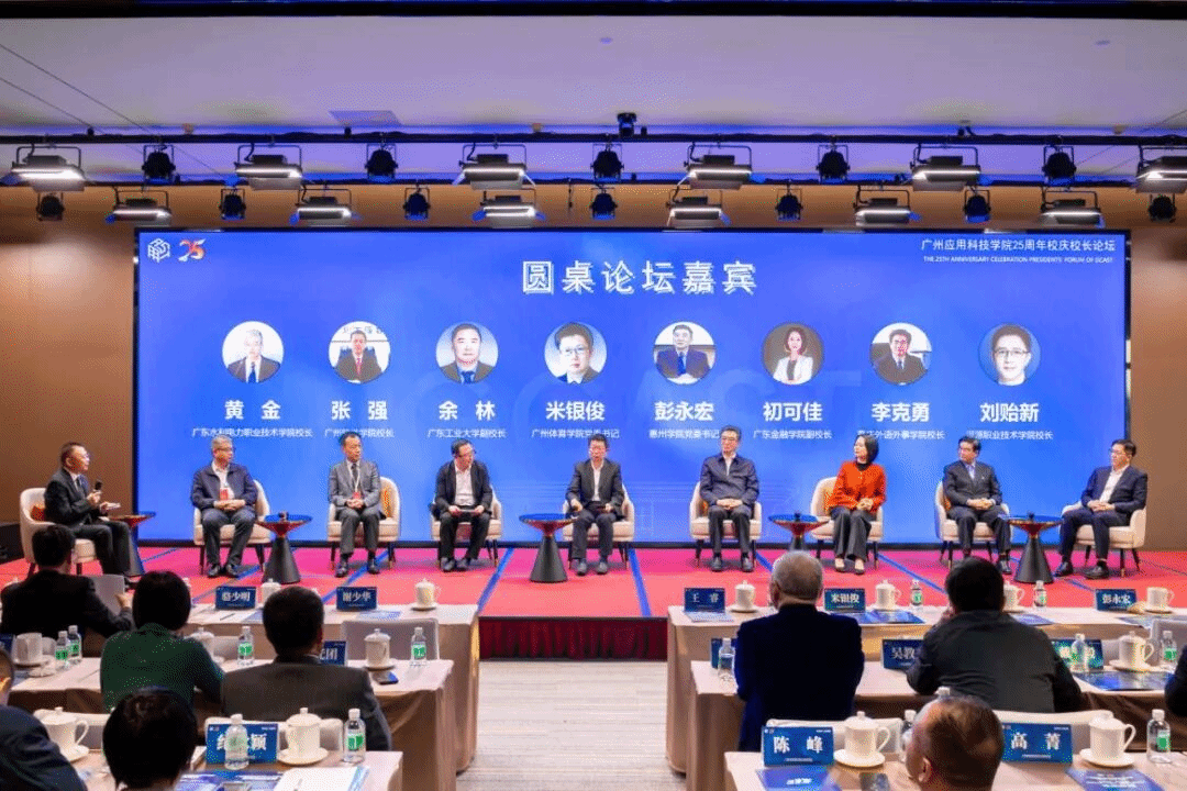 圆桌论坛环节,广州体育学院党委书记米银俊、惠州学院党委书记彭永宏、广东工业大学副校长余林、广东金融学院副校长初可佳、广州软件学院校长张强、重庆外语外事学院校长李克勇、广东水利电力职业技术学院校长黄金、河源职业技术学院校长刘贻新8位来自公办、民办以及高职院校的校领导,结合各自办学实践,就教育强国背景下的立德树人与人才培养、人工智能背景下的新工科新文科建设、民办高校生存挑战与应对、“新双高”背景下职业院校产教融合实践等议题展开深度交流。大家认为,教育强国背景下,应用型大学应紧扣大湾区产业升级需求,强化产教融合、科教融汇、校地融合,以教育数字化转型为抓手,着力培养适应新质生产力发展的高素质应用型人才。